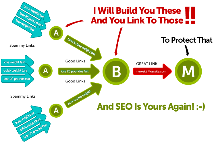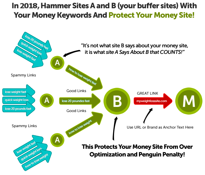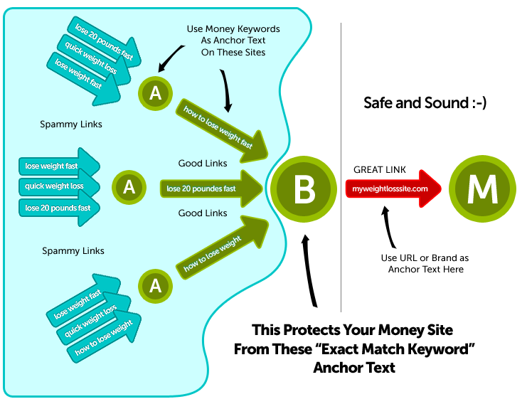 So here's the reason I tell you all of this. If I had HAMMERED the keyword "lose weight fast" to a "buffer site", our weight loss site would NEVER have gotten penalized and would still be receiving the juice of those anchor text links like it was 2010 all over again!?