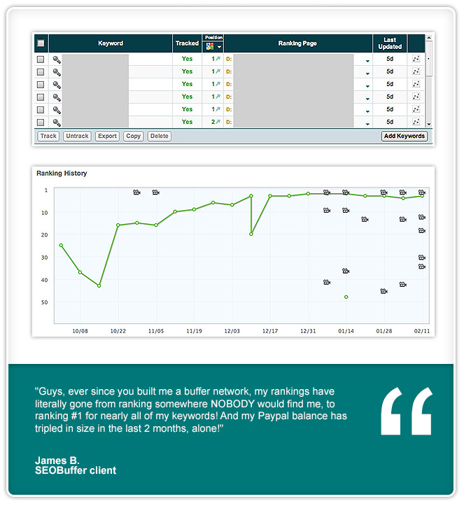 Ever since you built me an SEO Buffer network my rankings have literally gone from ranking somewhere NOBODY would find me, to ranking #1 for nearly all my keywords!